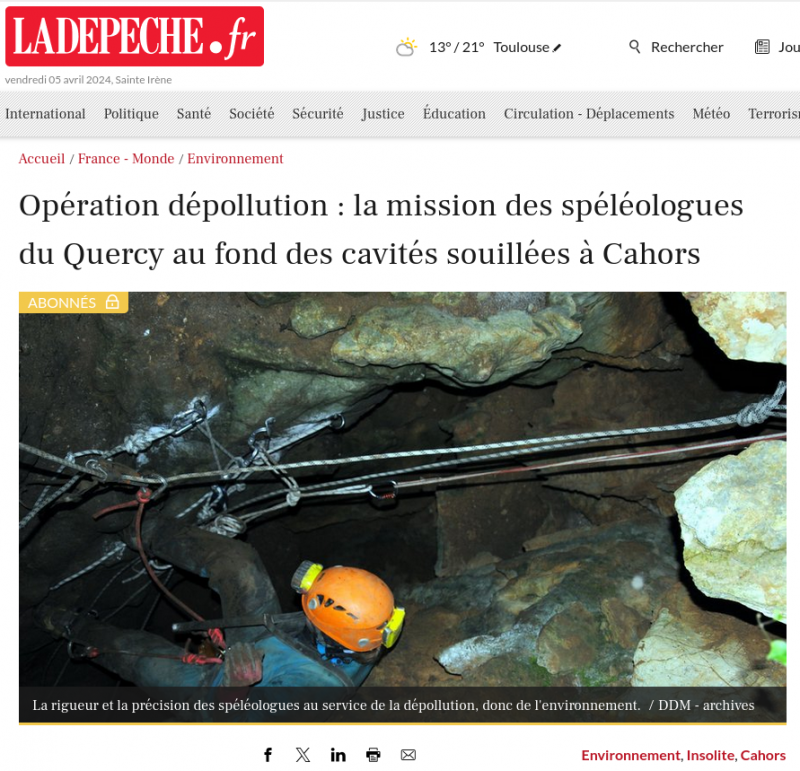 En Juin 2023, le club a organisé une dépollution de l'igue de Cavanies (Cahors Begoux), sur un financement d'appel à projet citoyen de la vile de Cahors. Plusieurs tonnes de déchets (ferrailles, pneus, ...) ont été sortis.