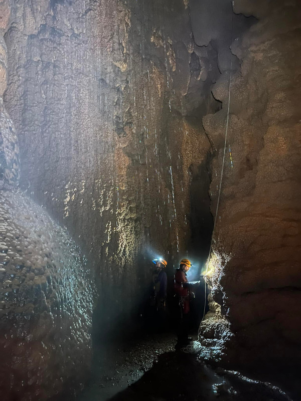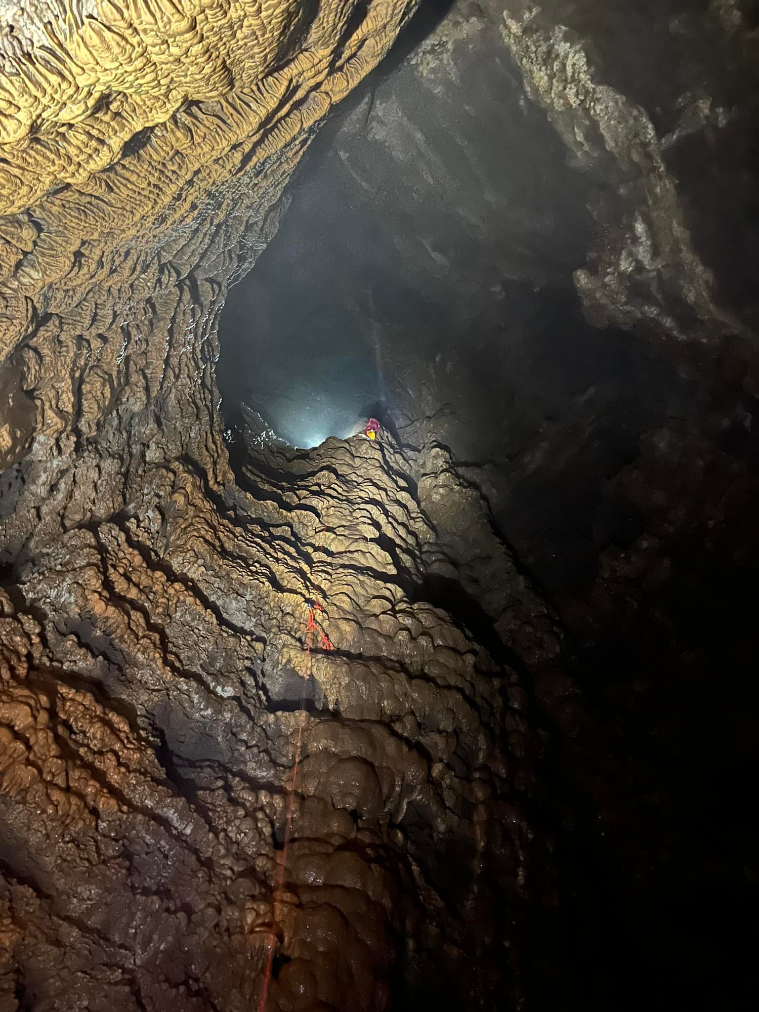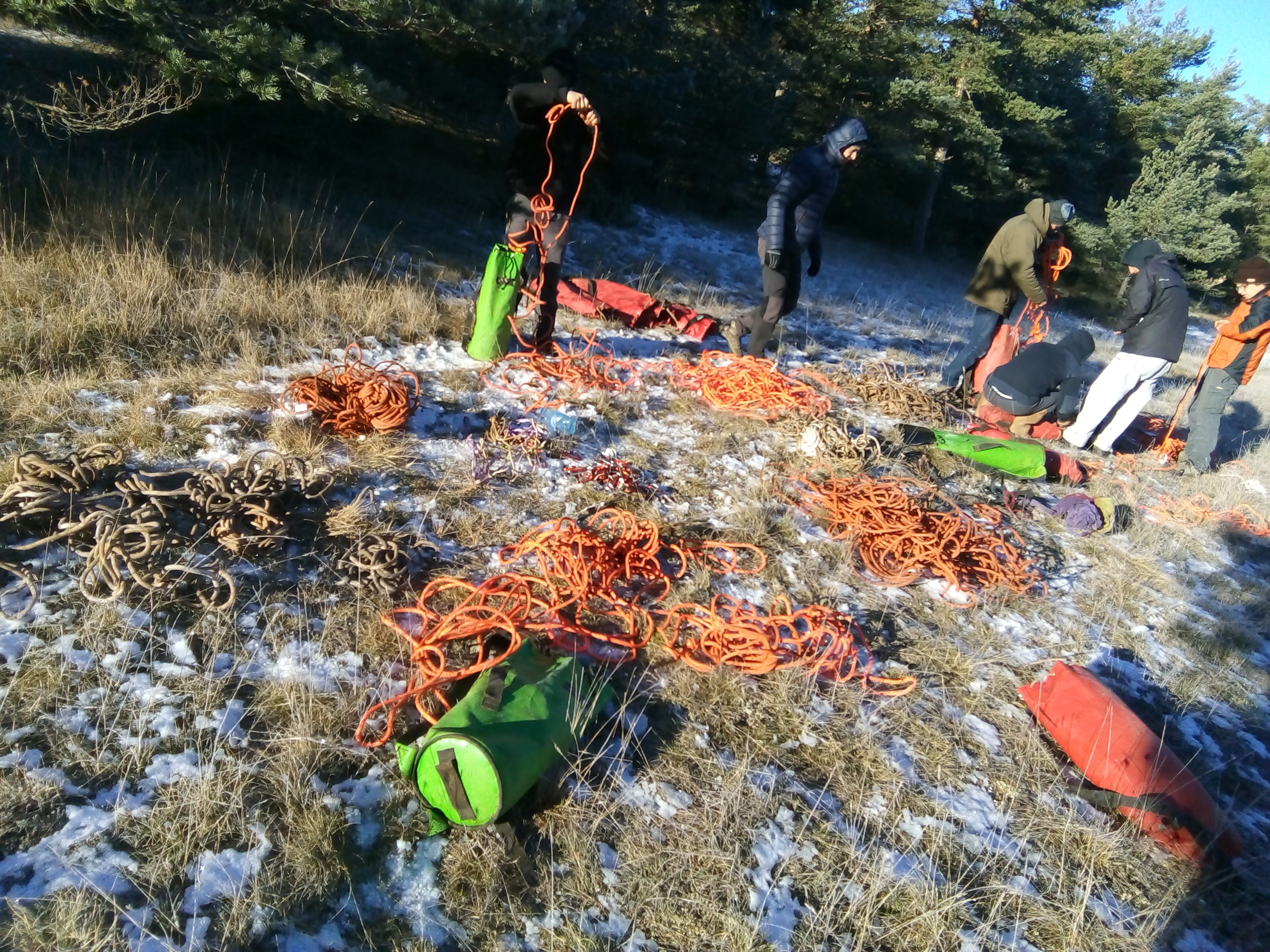 À l'occasion, le club participe à des sorties grandes courses, comme ici à l'Aven de Banicous sur le Causse Méjean (Aveyron), jusqu'à -300m.