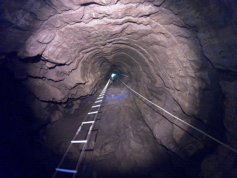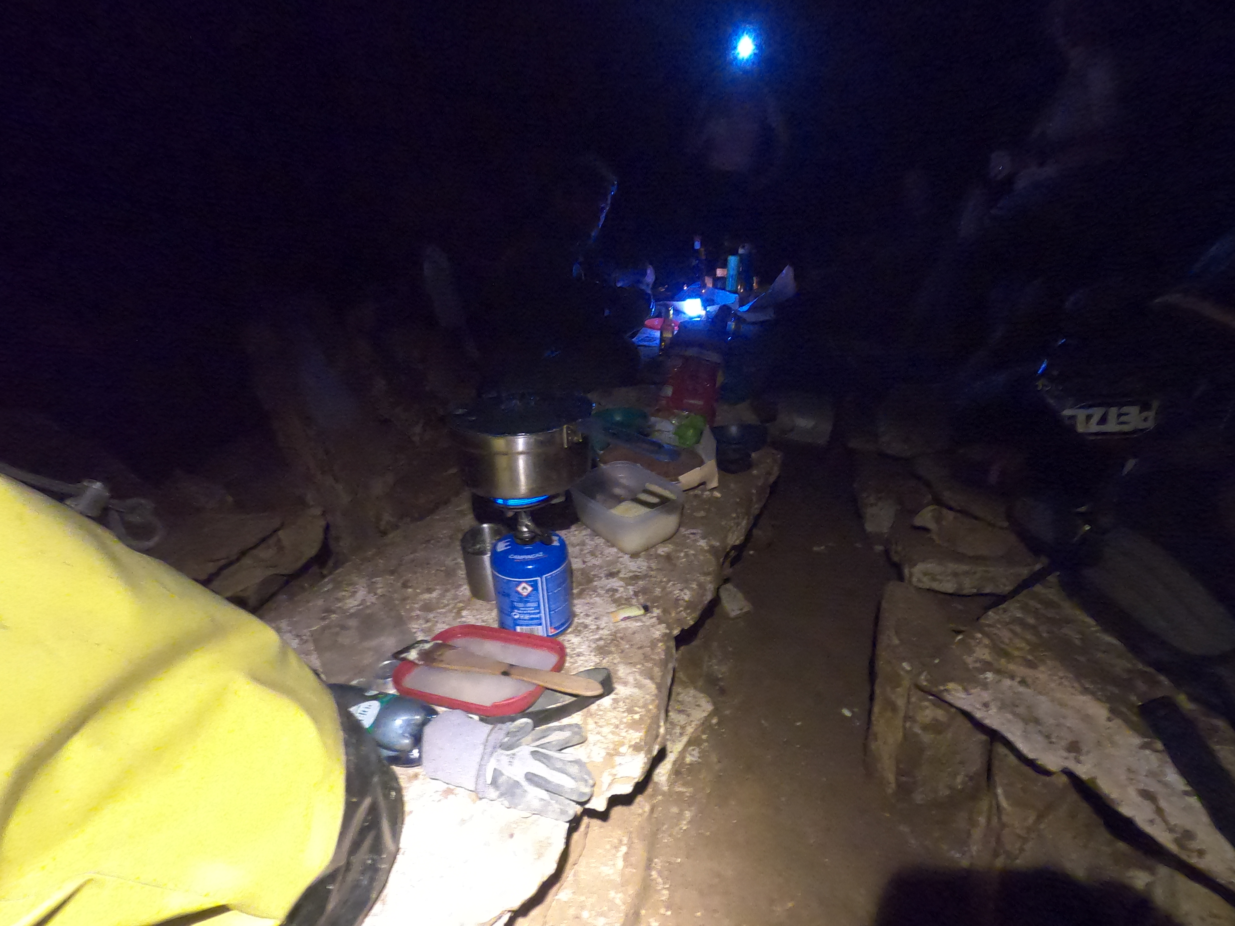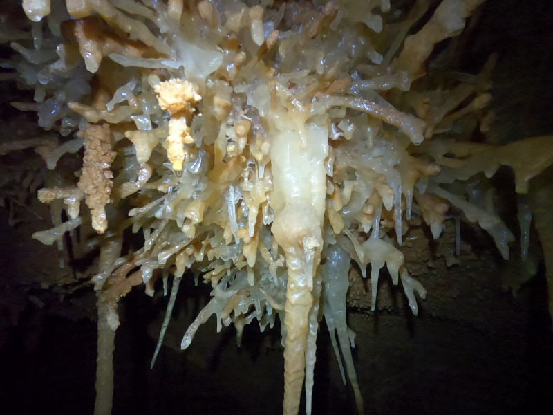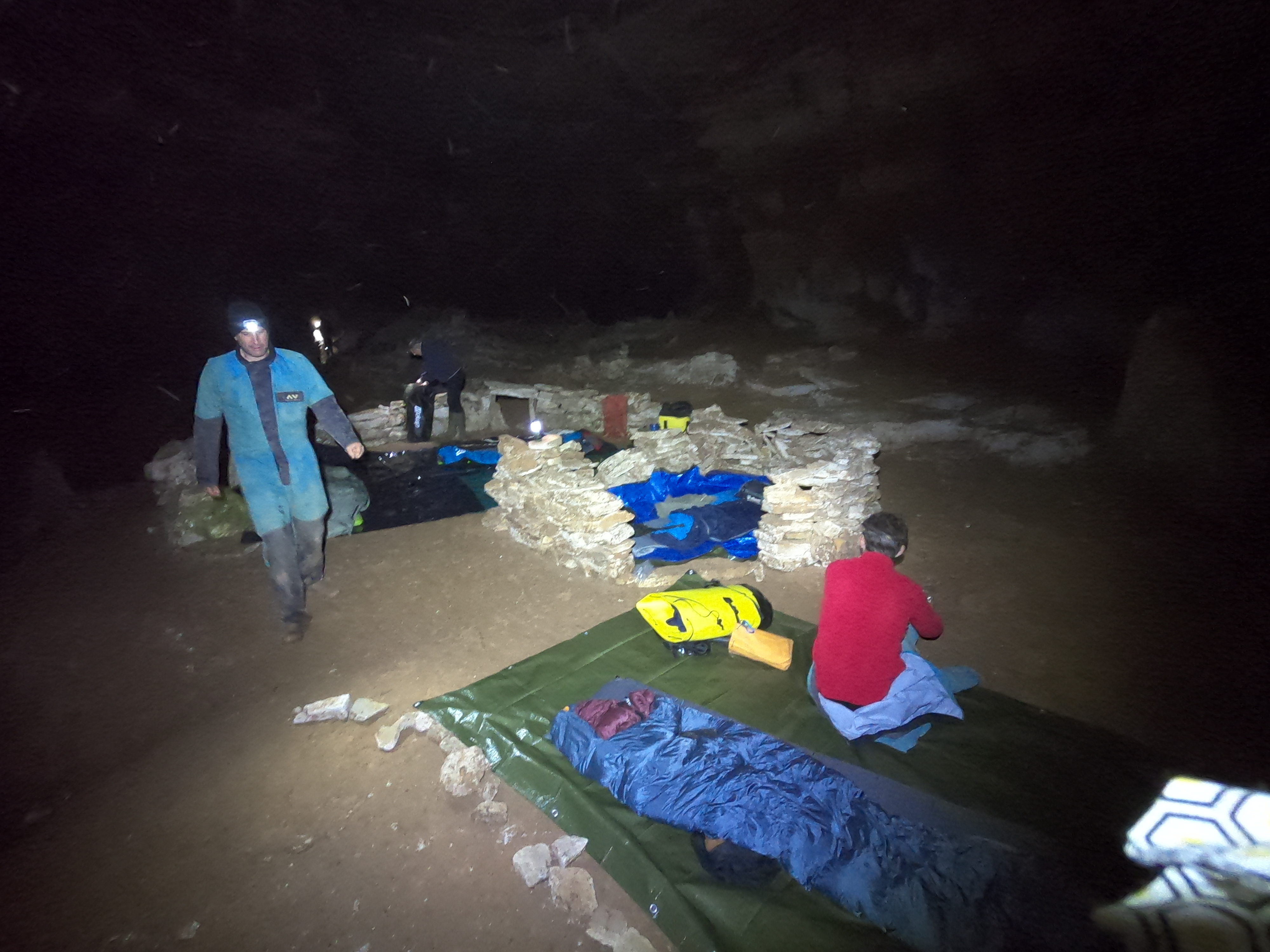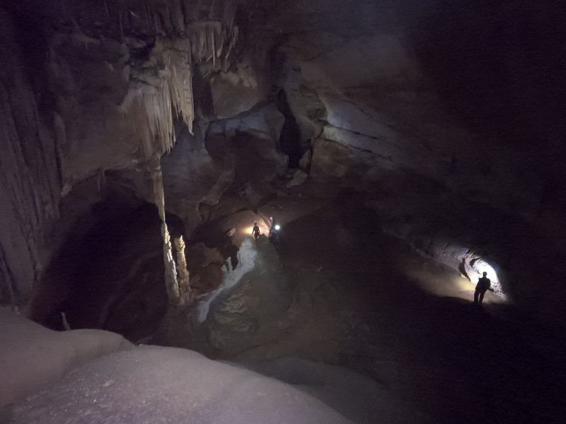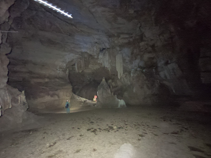 Puits de 64m à l'entrée, puis cavité relativement plate. Site de bivouak, musée d'argile, et de quoi explorer de l'autre coté.