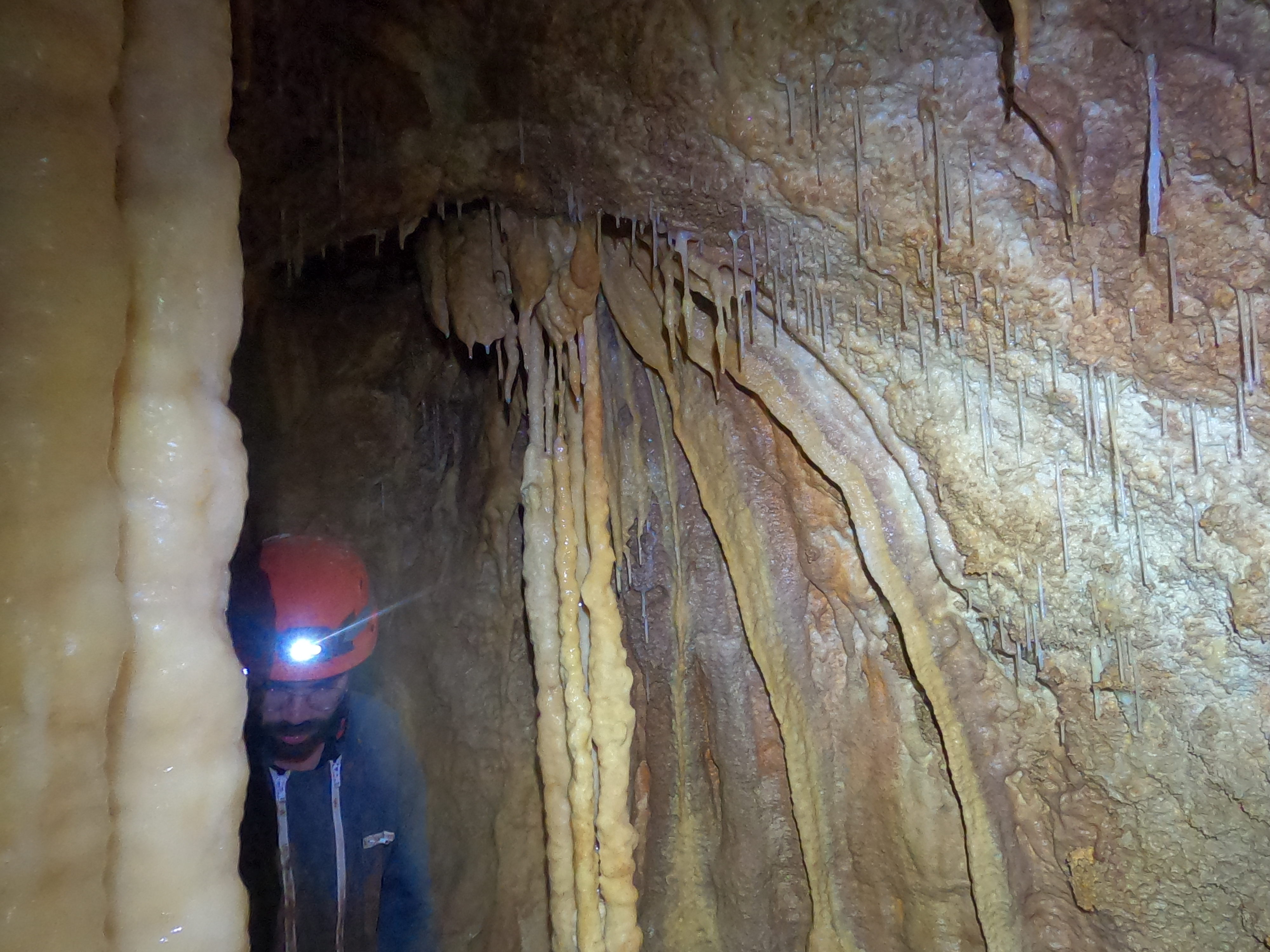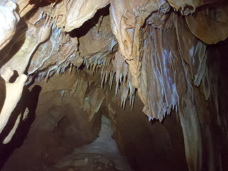 L'igue commence par un puits de 40m suivi d'un méandre qui donne un accès surplombant la rivière souterraine. L'exploration continue par une autre galerie, accessible en main courante, qui donne accès à un grand réseau horizontal.