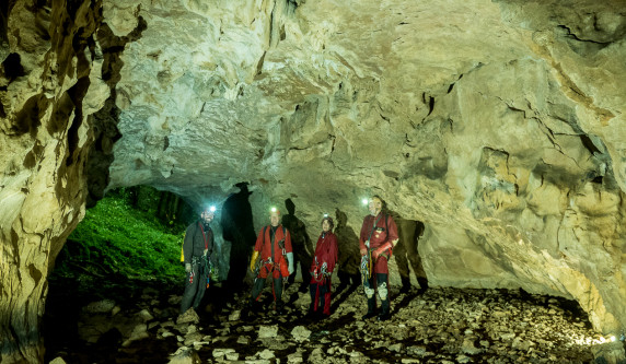 Plus de photosL'accès à la cavité se fait par une igue en début de forêt, qui plonge dans un puits de 30m. On descend ensuite jusqu'à la riviére, où l'on peut choisir de continuer en hauteur dans les galeries fossiles, ou en aquatique en descendant la rivière.
